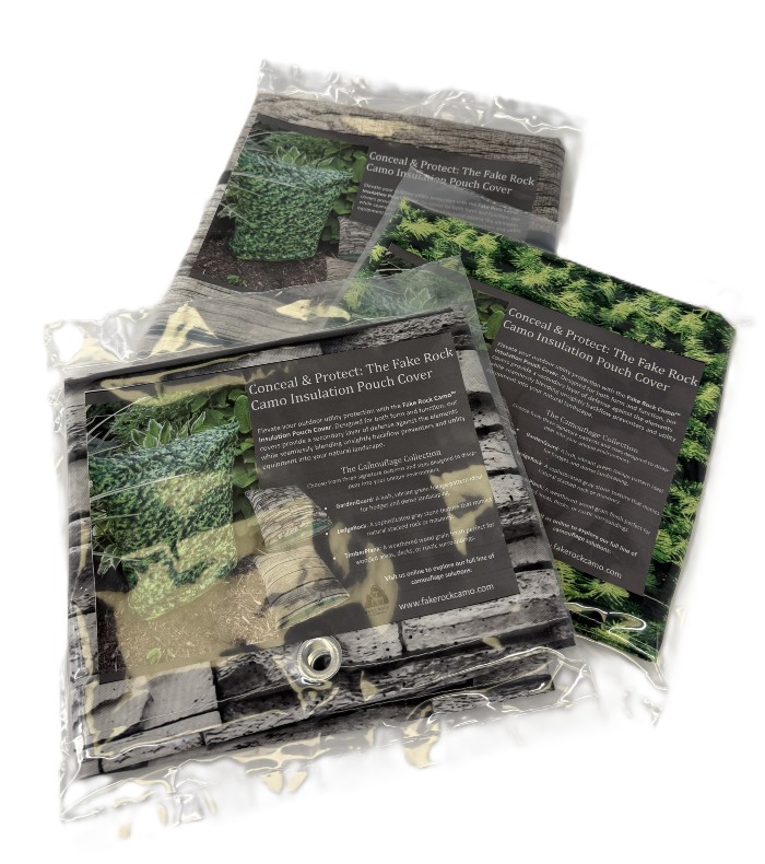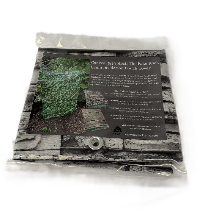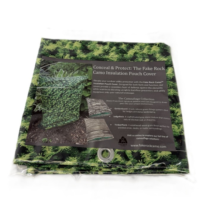 Enhance the longevity and aesthetic appeal of your outdoor plumbing infrastructure with these premium, weatherproof fabric covers, specifically designed to protect existing insulation pouches on backflow devices from harsh sun exposure and environmental damage. Available in three realistic, nature-inspired designs—GardenGuard Camo, LedgeRock Camo and TimberPlank Camo—these durable covers allow unsightly, industrial-looking insulation pouches and backflows to blend seamlessly into your landscape, bushes, or home exterior. Engineered for maximum security, each cover features heavy-duty built-in grommets, allowing you to easily secure the cover over the pouch with included heavy duty reusable zip ties, providing a wind-resistant and, if needed, theft-deterrent barrier that maintains essential, year-round UV and weather protection.